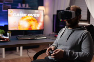 2024-07-24 0 Man playing video games on computer using vr glasses Publié dans : Navigation de l’article DicoGeek : Noob – Le Manuel de Survie Partager l'article :