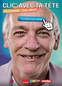 Petit news belge, une nouvelle campagne de la Communauté française avec Moustique et Pure FM. (J’ai peur de prononcer leur nom dans les news maintenant …) avec la collaboration de Fadila Laanan, ministre de la Culture, de l’Audiovisuel, de la Santé et de l’Égalité des chances, a présenté le 15 juin dernier la campagne de sensibilisation au téléchargement légal « clic’avec ta tête ».