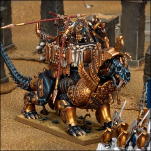 Les chevaliers des nécropoles se tiennent juchés sur la collerette de leurs monstrueux nécroserpents. Il s’agit d’une unité de cavalerie monstrueuse délivrant 5 Attaques par figurine, dont 3 sont empoisonnées et 2 suivent la règle Coup Fatal. De plus, étant de la Cavalerie Monstrueuse, elle peut piétiner (ou plutôt, étouffer par constriction…) ses ennemis, et dispose d’une sauvegarde d’armure de 3+.