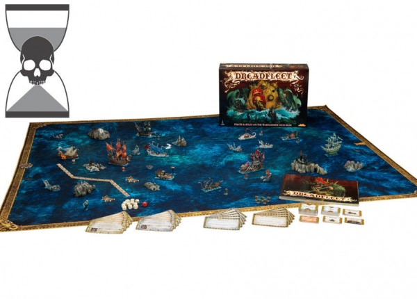 Dreadfleet est une boîte de jeu pour deux joueurs (ou plus) contenant tout le matériel nécessaire pour livrer des combats navals sur les mers démontées de Warhammer. Vous prendrez le commandement, soit de la Flotte Maudite, menée par le comte vampire Noctilus à bord de son Naufrageur, soit de la Grande Alliance, dirigée par le capitaine corsaire Jaego Roth, qui a récemment dérobé Heldenhammer, l’un des navires de guerre les plus titanesque à jamais avoir sillonné les hautes mers.
